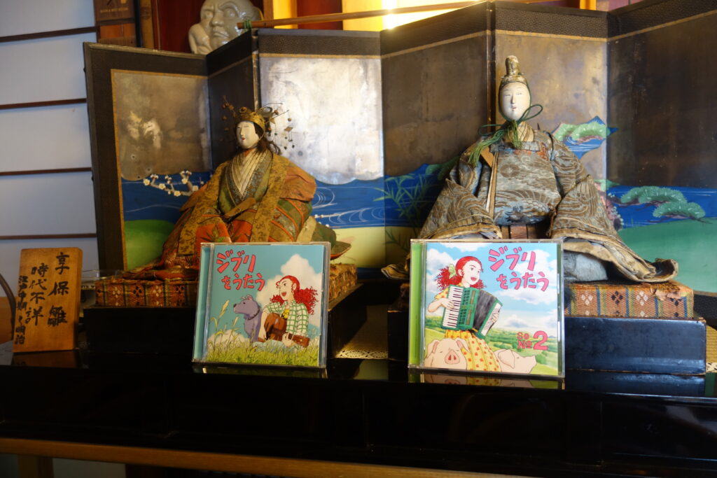 ひなまつりは女の子の行事だから、ジブリはいいよねと・・ジブリを聴きたいとご来館・・?「うわっ レトロ~おひなさま」相川ひなまつり」は3/15(日)までです。