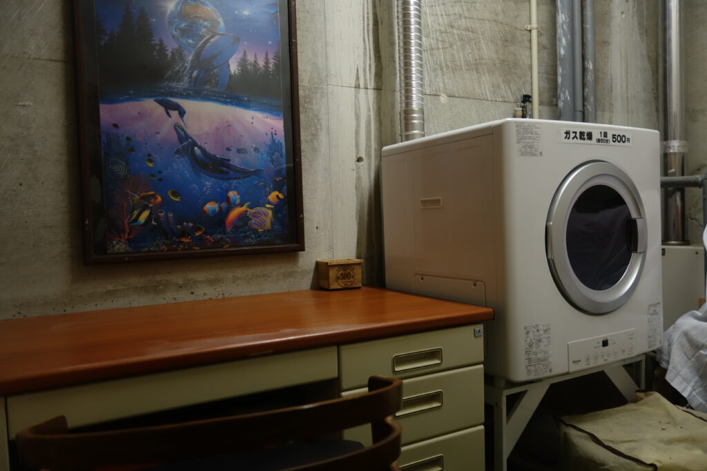 ホント、これがあると助かる~❣ 特に冬季はありがたい、優れもの。洗濯モノを部屋干しする必要がない‼。約50分で乾燥、仕上がりもふっく~ら。スポーツやアウトドア関連のGuest様にも重宝されそう。脇にデスクを置き、たためるようにしました。